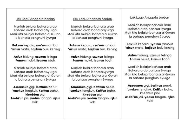 Songtekst van didi friends met anggota badan kan je hier vinden op. Bila jalan-jalan Kita guna kaki Bila jumpa kawan. Lagu baru didi friends anggota badanjom tengok lagi di sini.